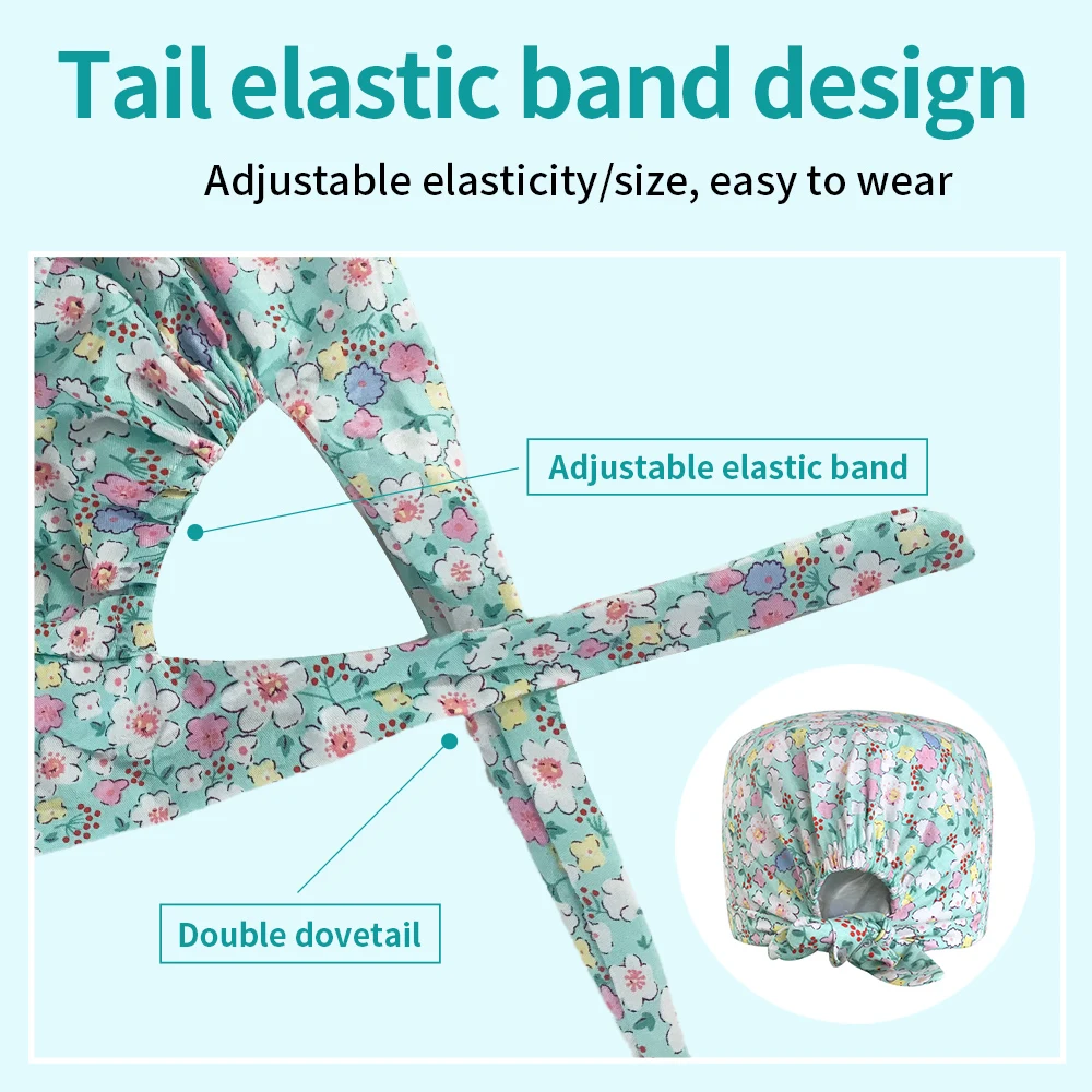 כיסוי ראש כירוגי לרופא שיניים 100% כותנה, אלסטי, בצבע שחור ושיניים לבנות