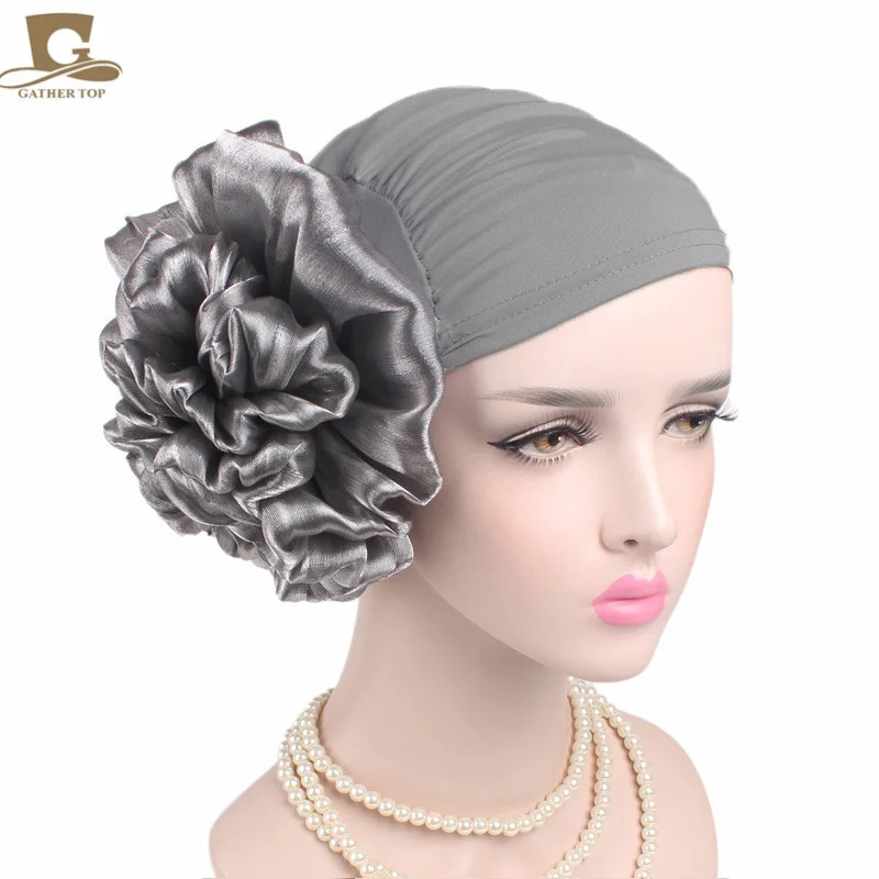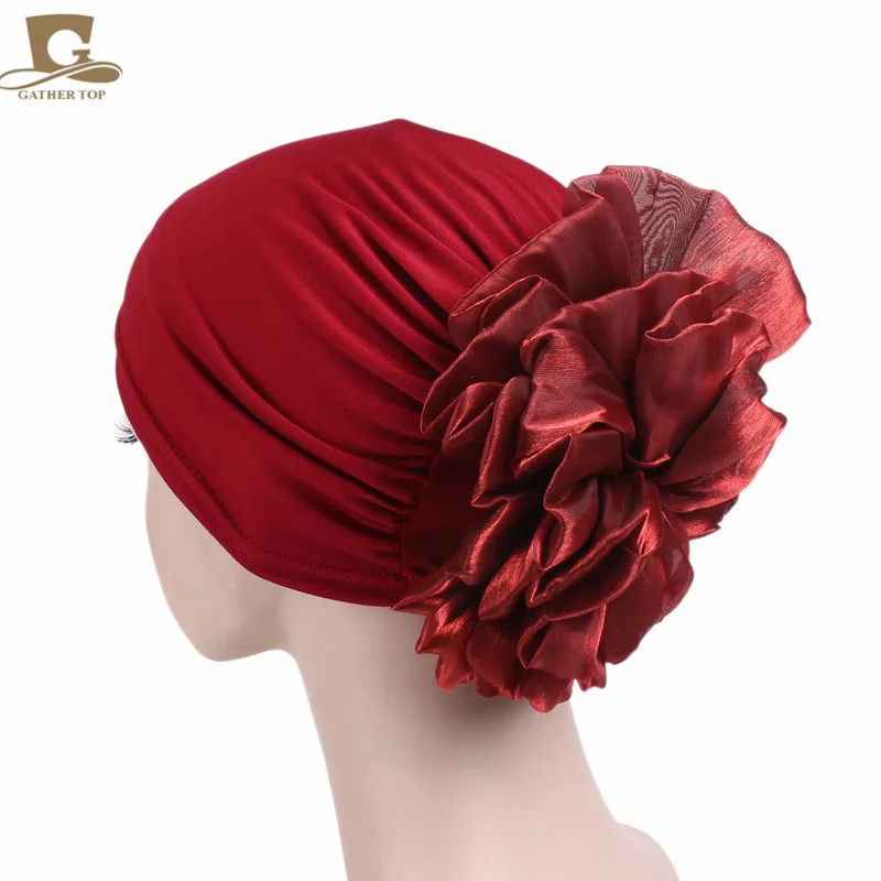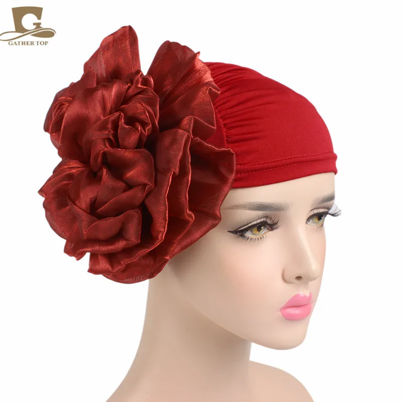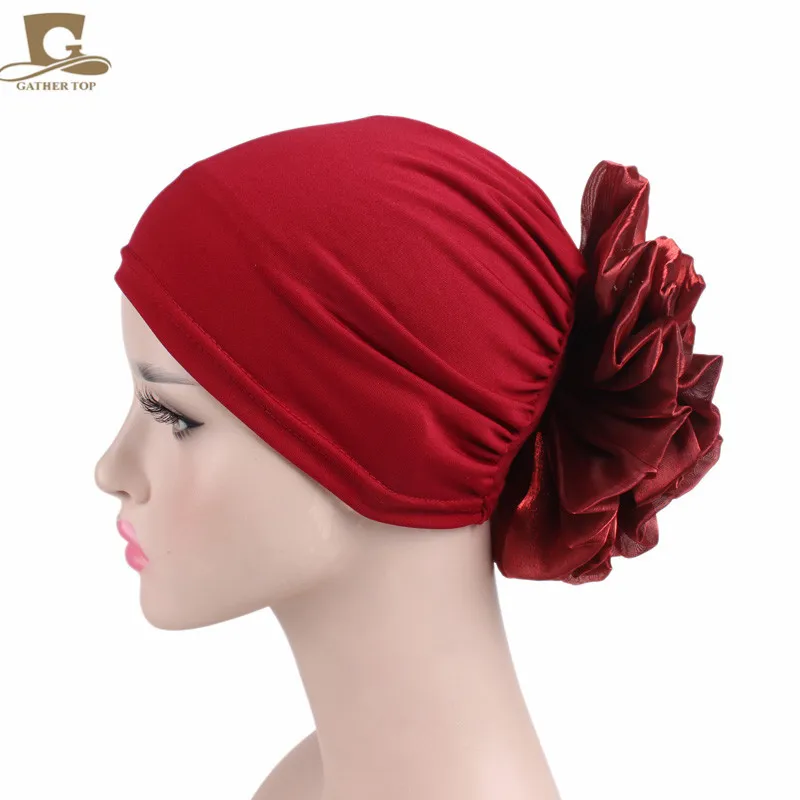 כיסוי ראש לנשים עם פרח מאחור בצבעים אדום, לבן, שחור, קרם, סגול. פוליאסטר