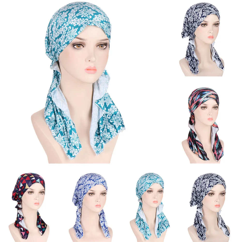 כיסוי ראש מטפחת לנשים ליום יום, מכותנה עם גומי מובנה אלסטי מאחור וקשירה עצמאית, 5 צבעים לבחירה