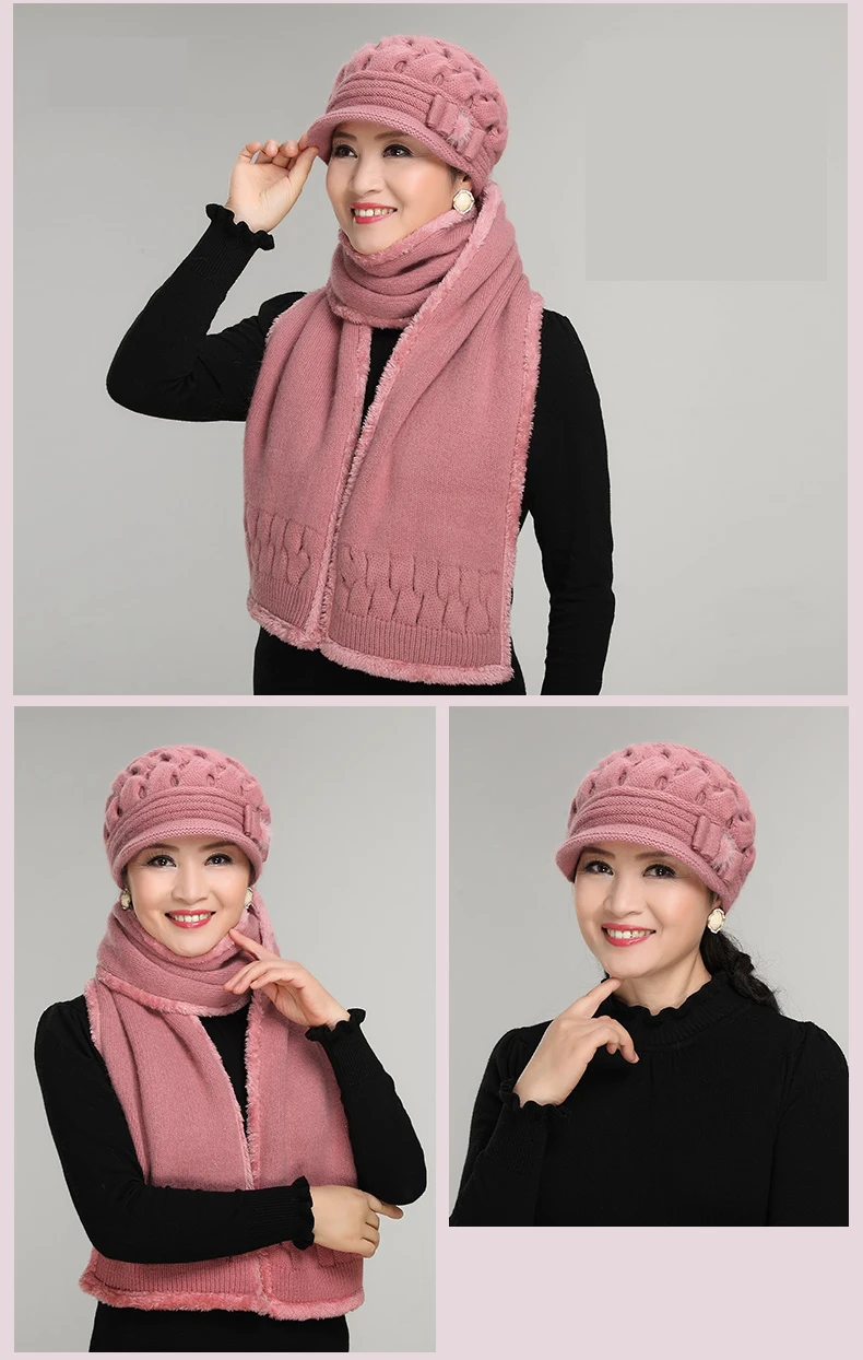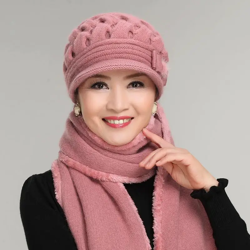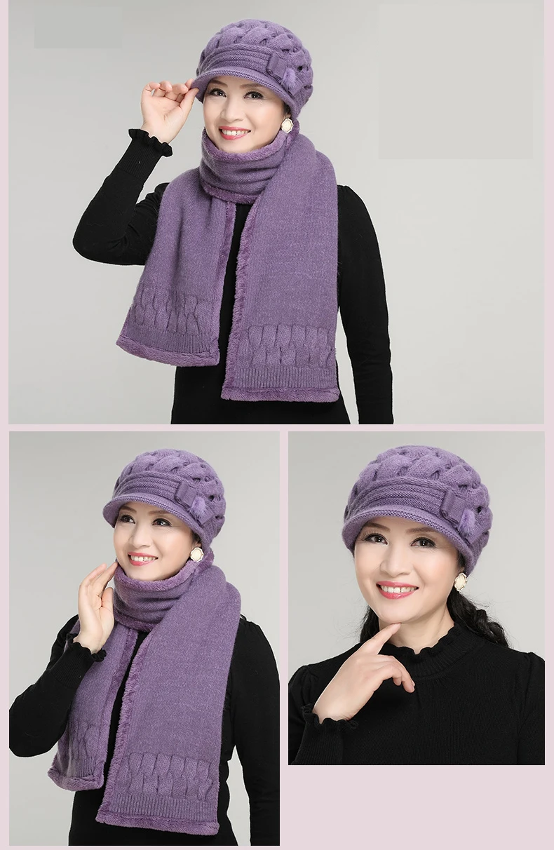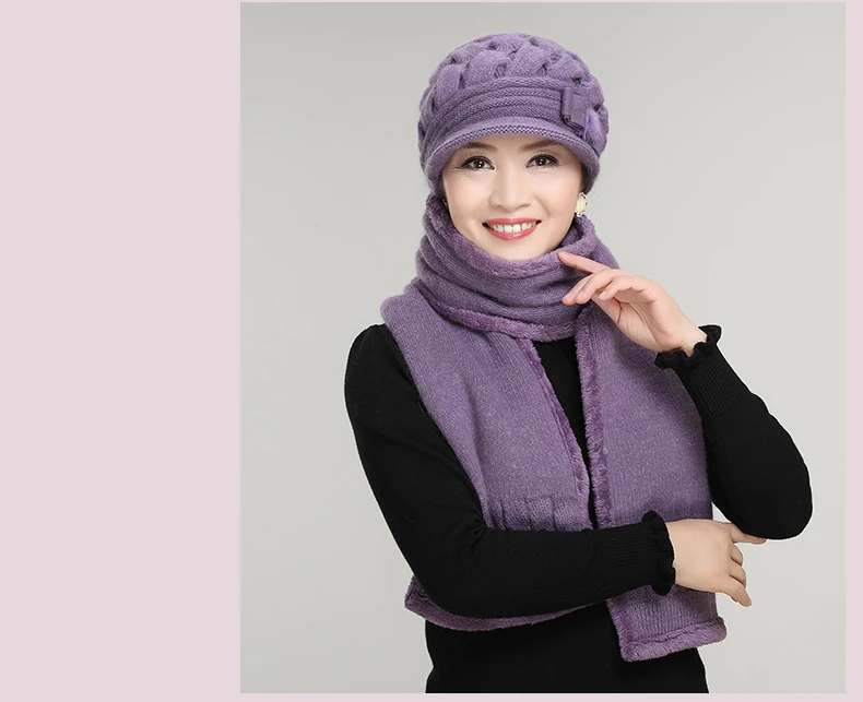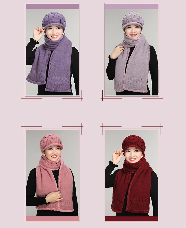 סט כובע וצעיף צמר סריג לנשים בעיצוב מדליק ואפנתי בשלל צבעים יפים, איכותי ומחמם, מתנה מושלמת לאמא או לסבתה