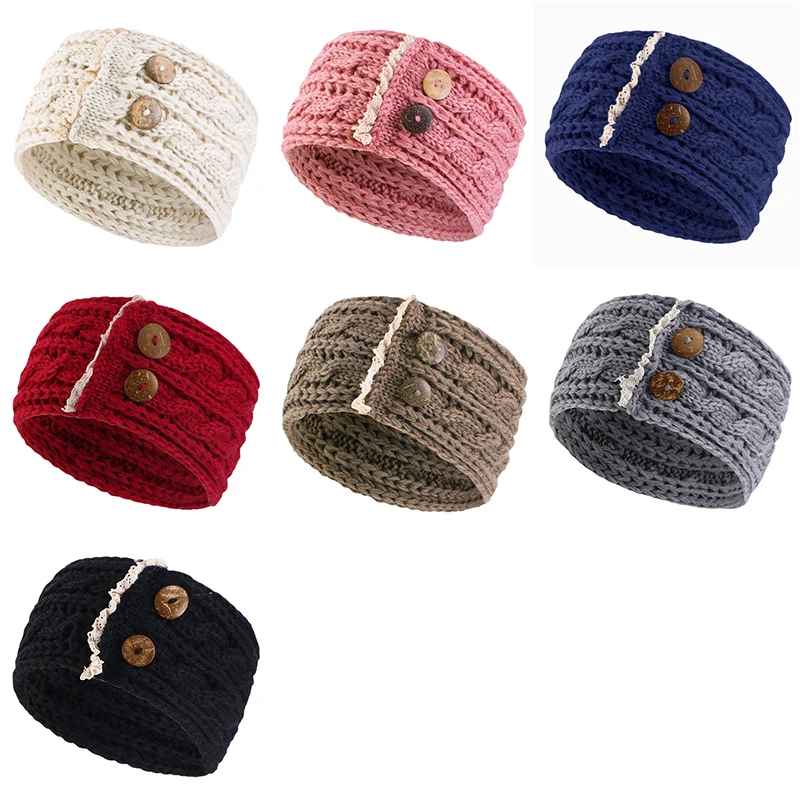 סרט ראש מצמר אלסטי עם כפתורים בעיצוב חורפי ב 7 צבעים לבחירה