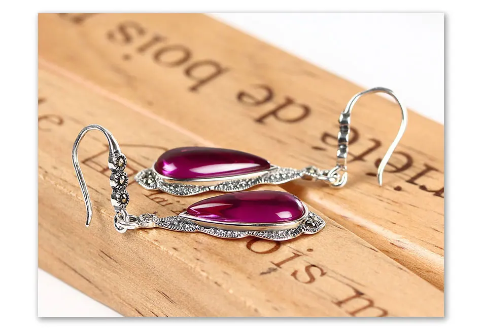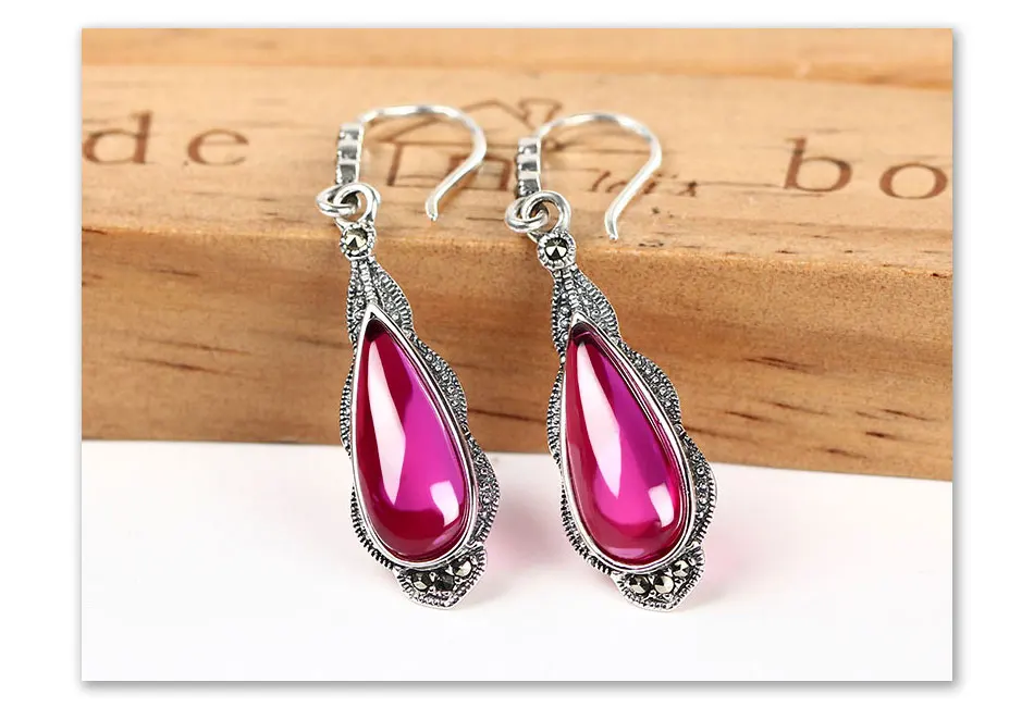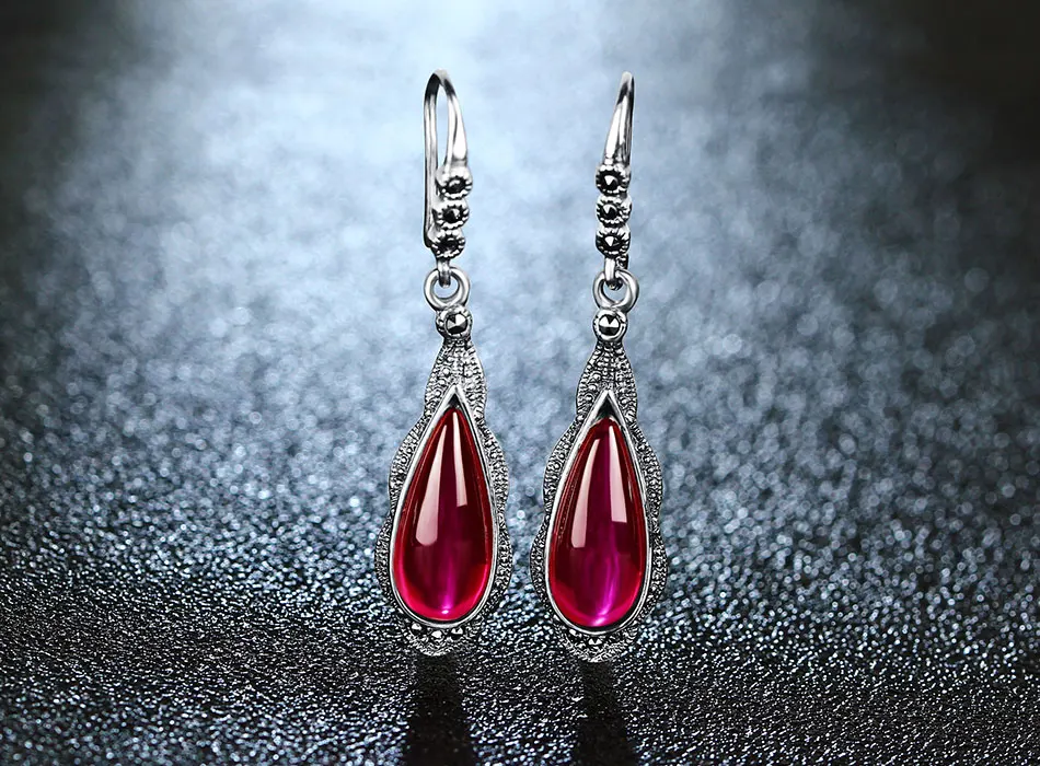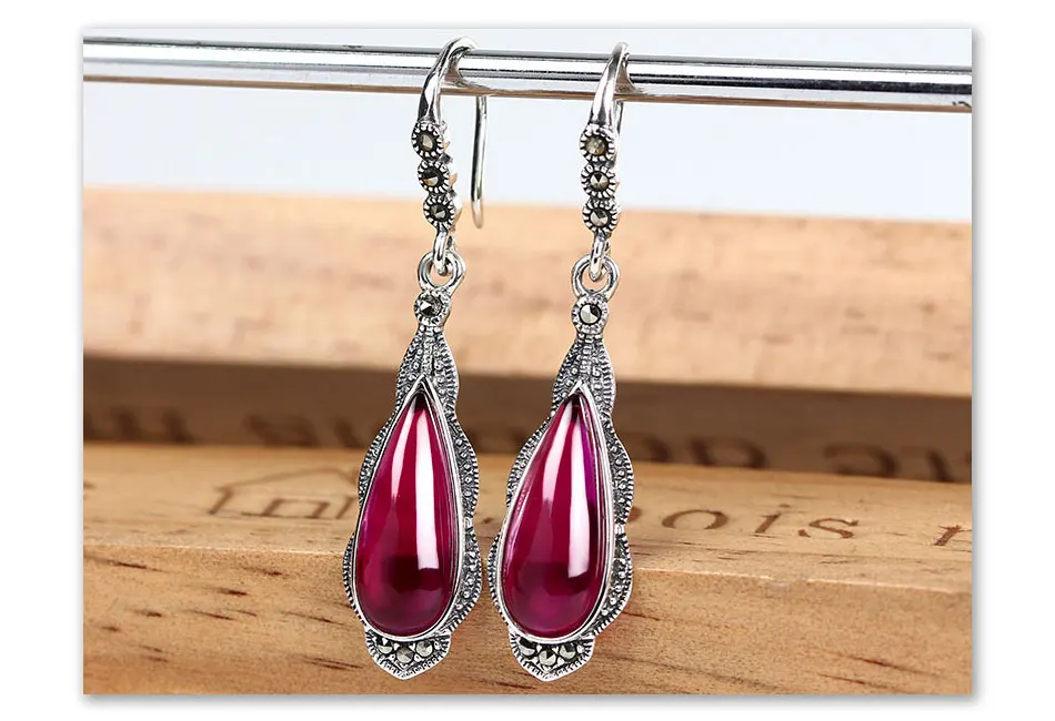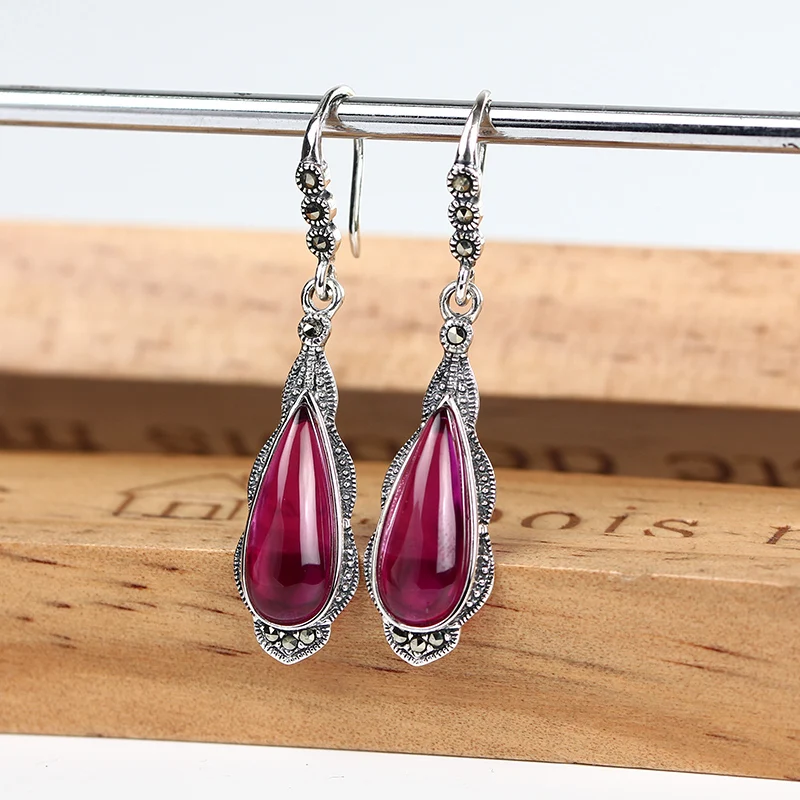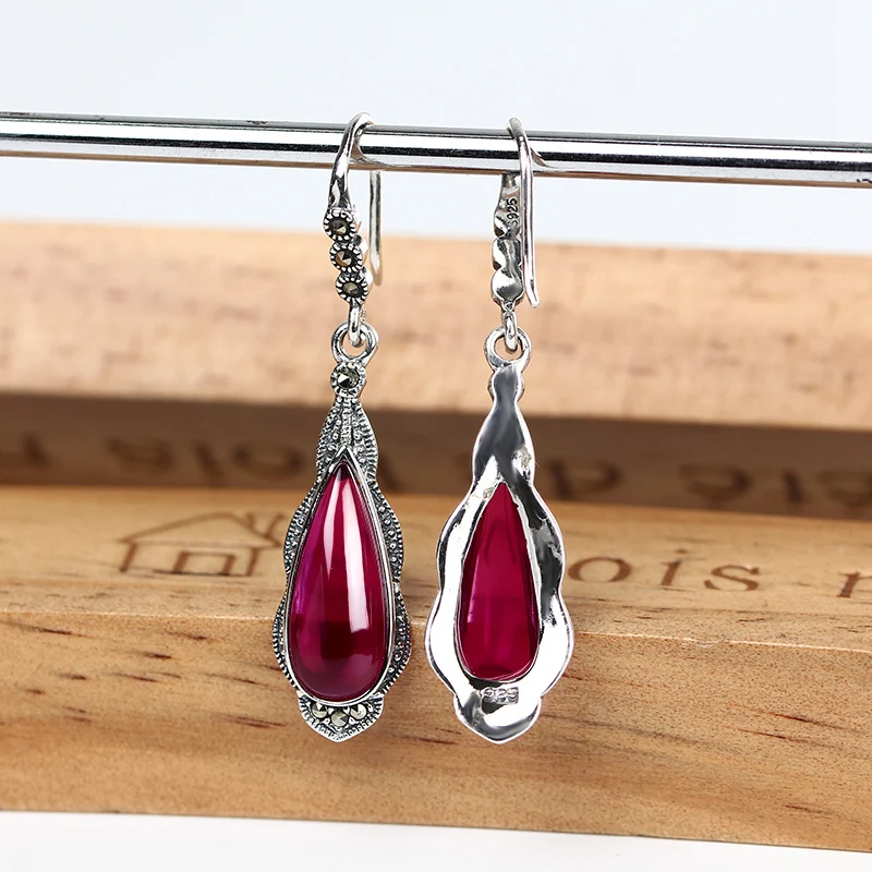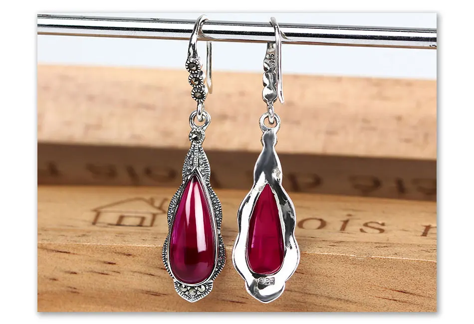 עגילי כסף 100% 925 סטרלינג לנשים עם אבן אובי אדומה מדהימה ויוקרתית, בעיצוב מיוחד ואלגנטי
