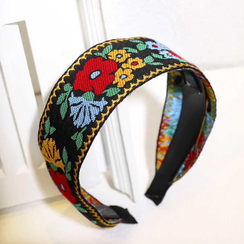 קשתות לשיער רקמות רחבה עבודת יד 5 צבעים