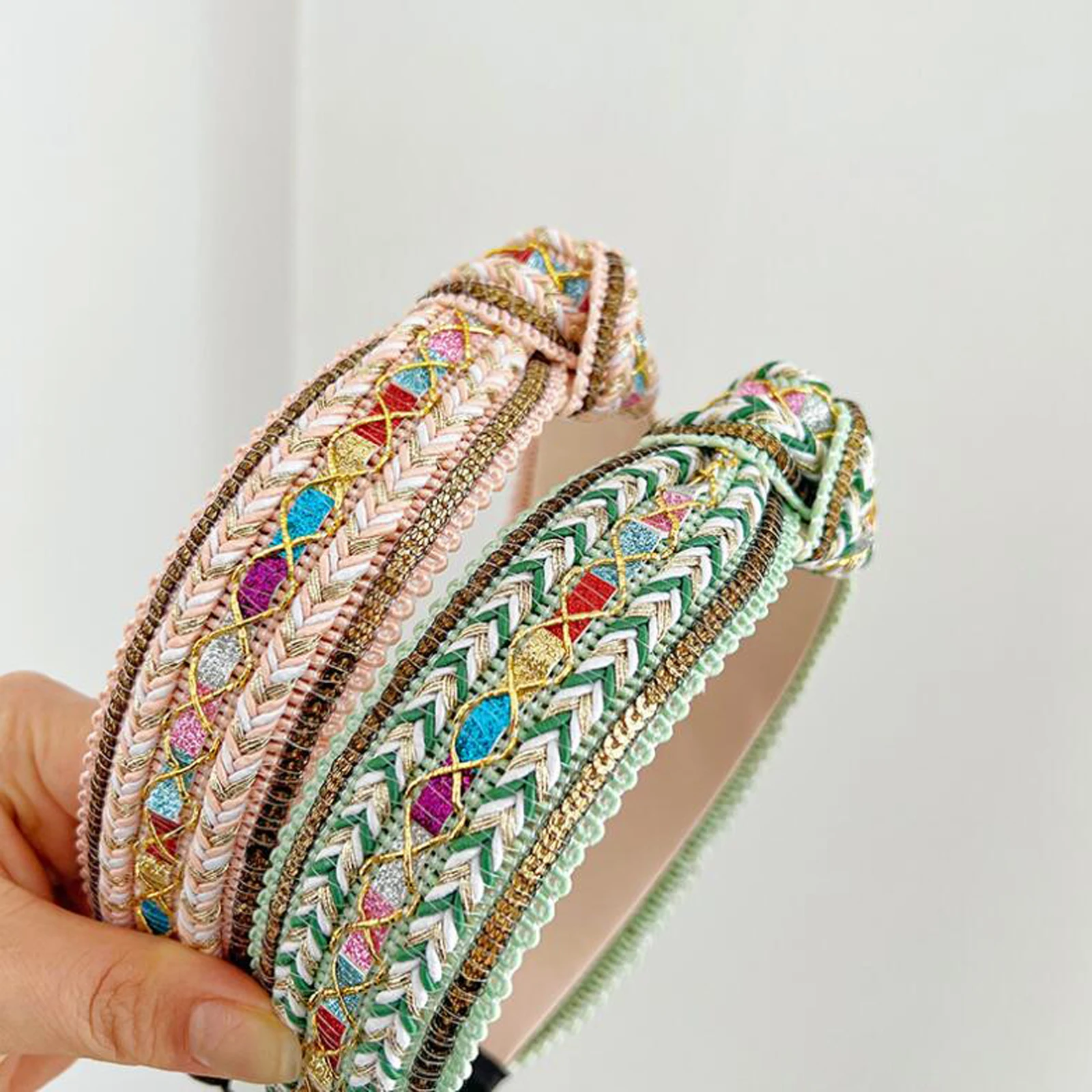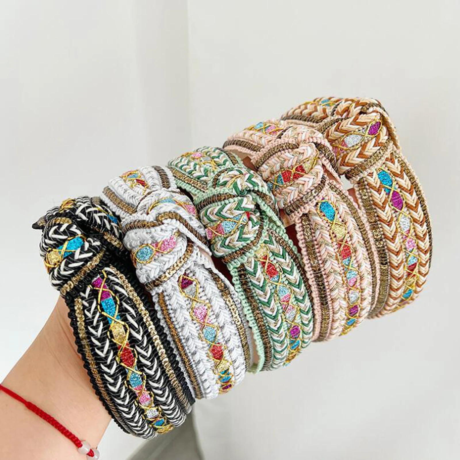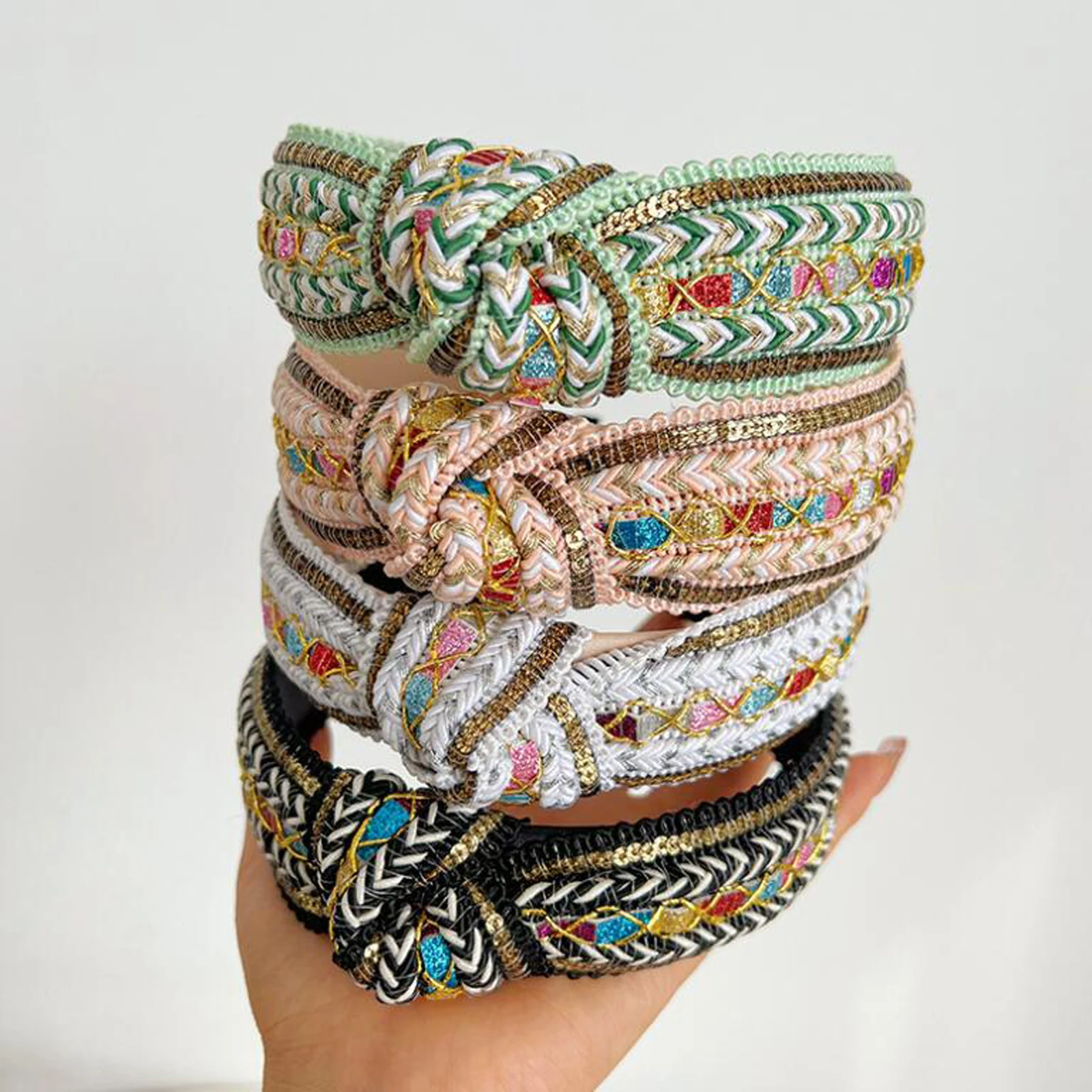 קשת לשיער לנשים בעיצוב מיוחד עבודת יד, סרג עם קשר מלפנים, 12 צבעים לבחירה, מאוד מיוחדים