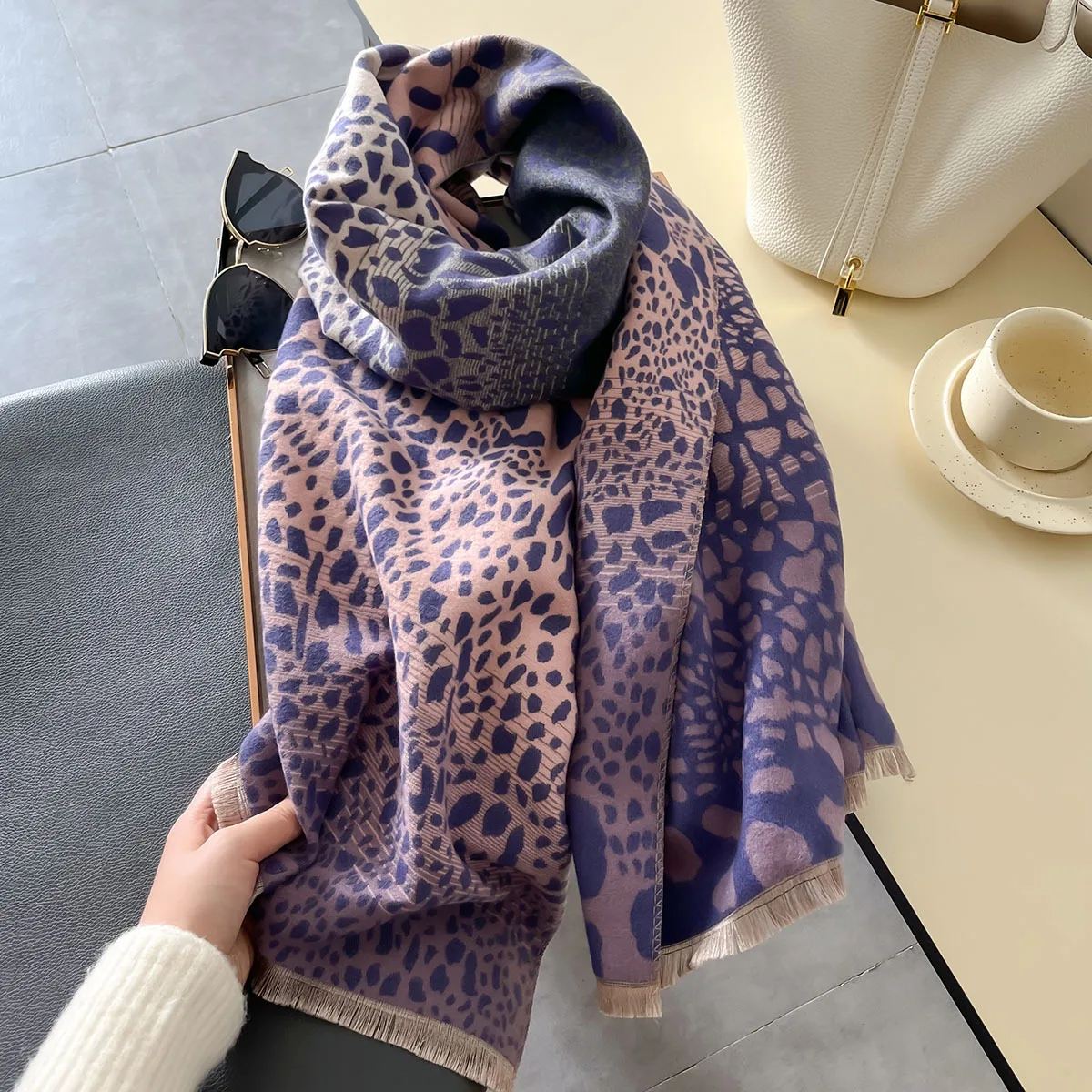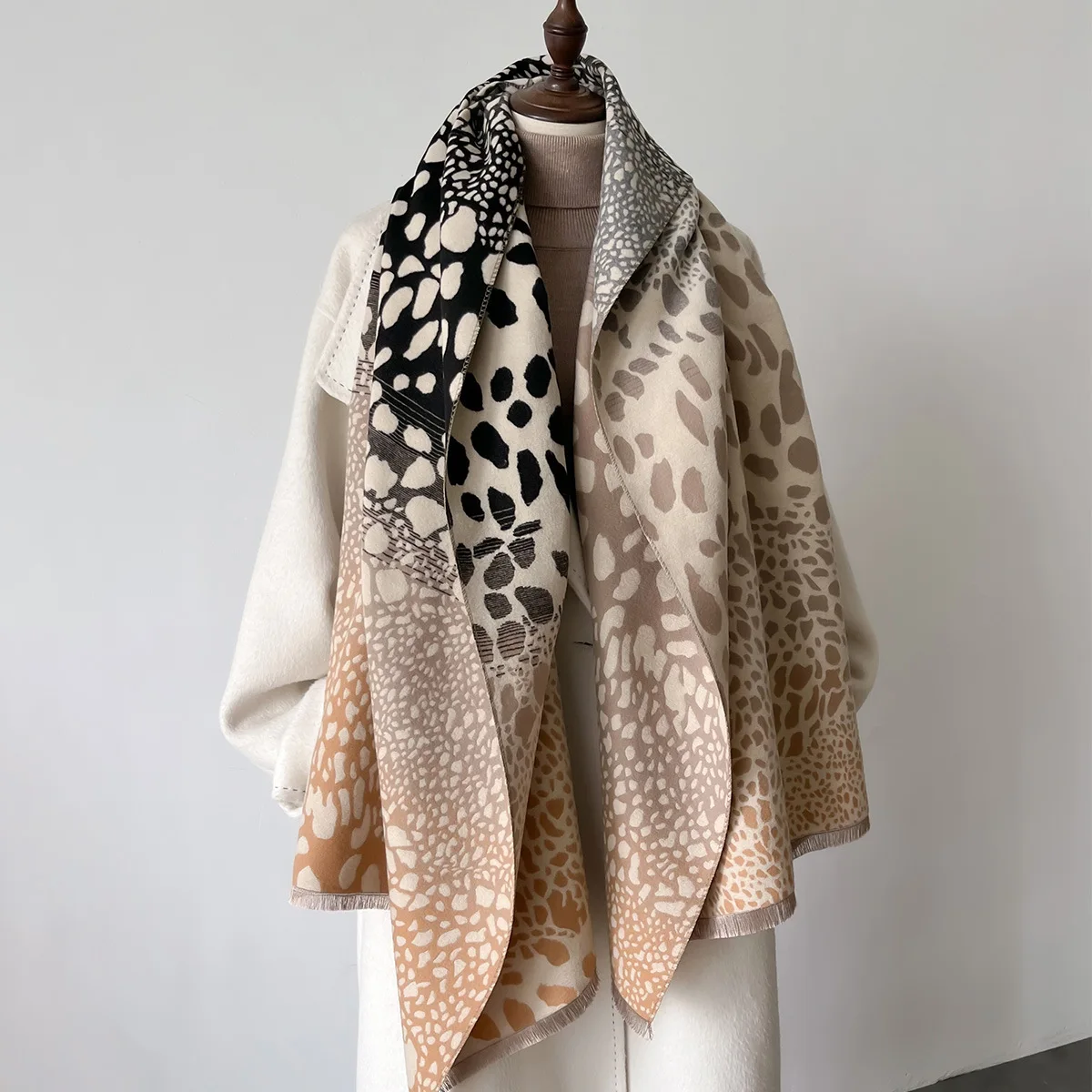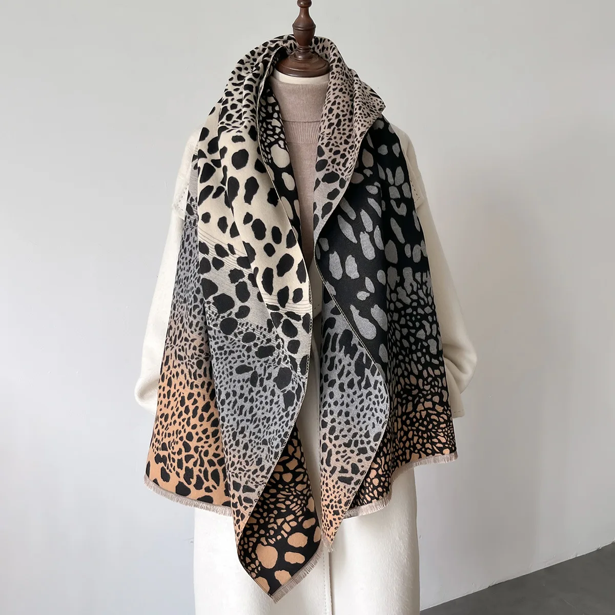 שכמיית קשמיר גדולה מנומרת 186X66 צעיף מנומר 5 צבעים לבחירה