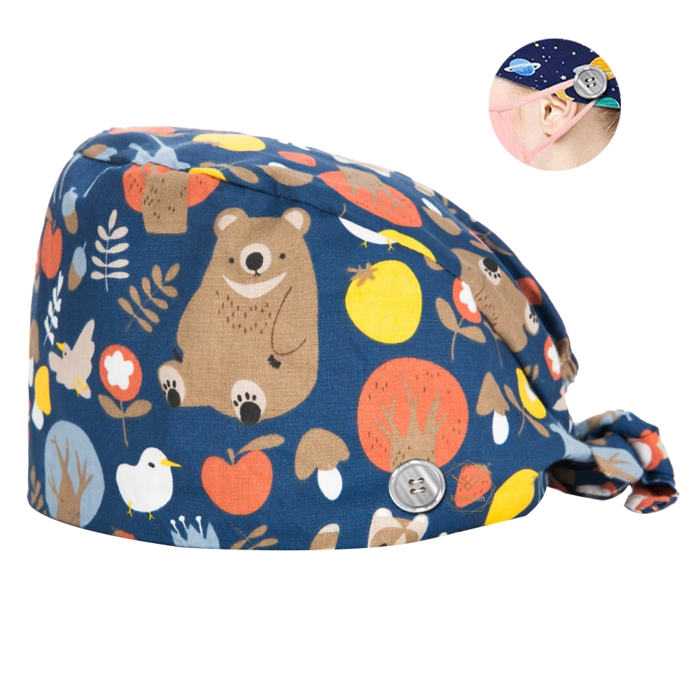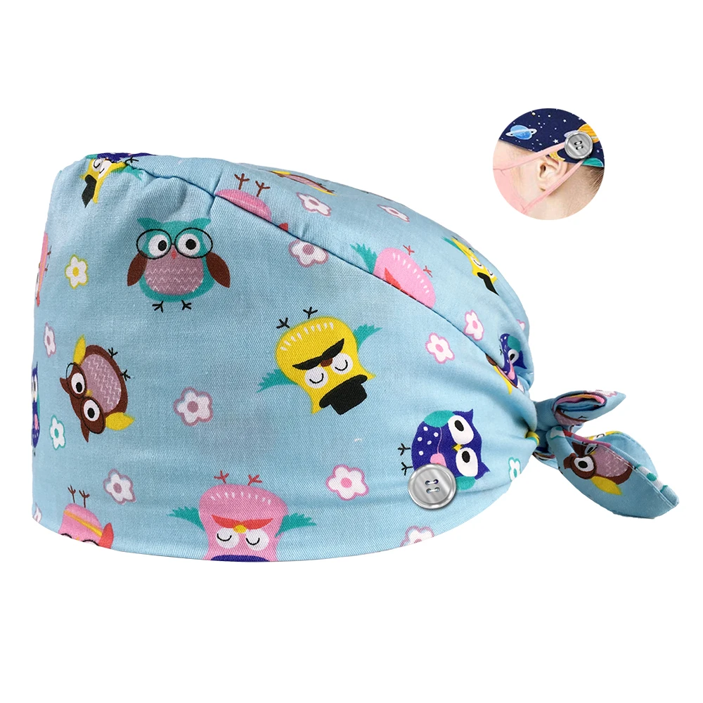 כובע כירורגי עם הדפסי שונים מדהימים באיכות גבוהה עם סרט זיעה מובנה מכותנה וכפתורים למסיכות, 10 צבעים לבחירה