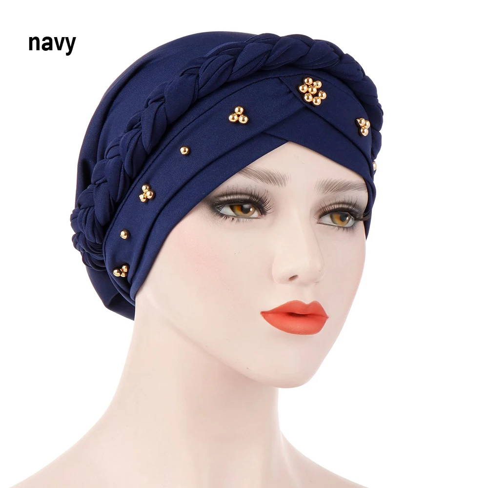 כיסוי ראש מעוצב אלסטי עם צמה וחרוזים עדינים בצבעים שונים, גמיש, קל ונוח ללבישה 10 צבעים