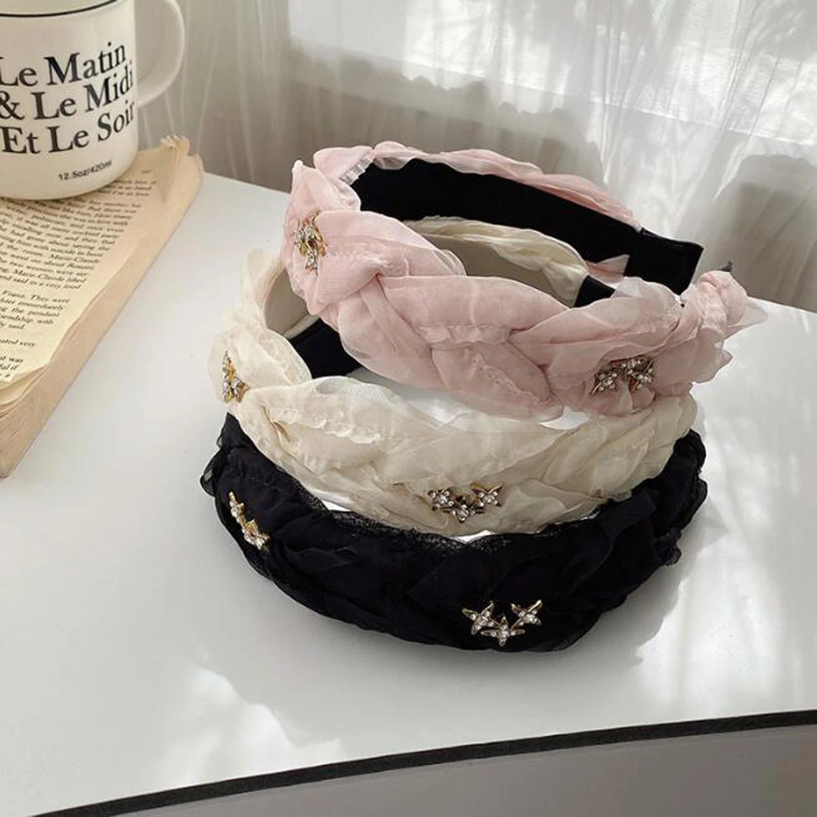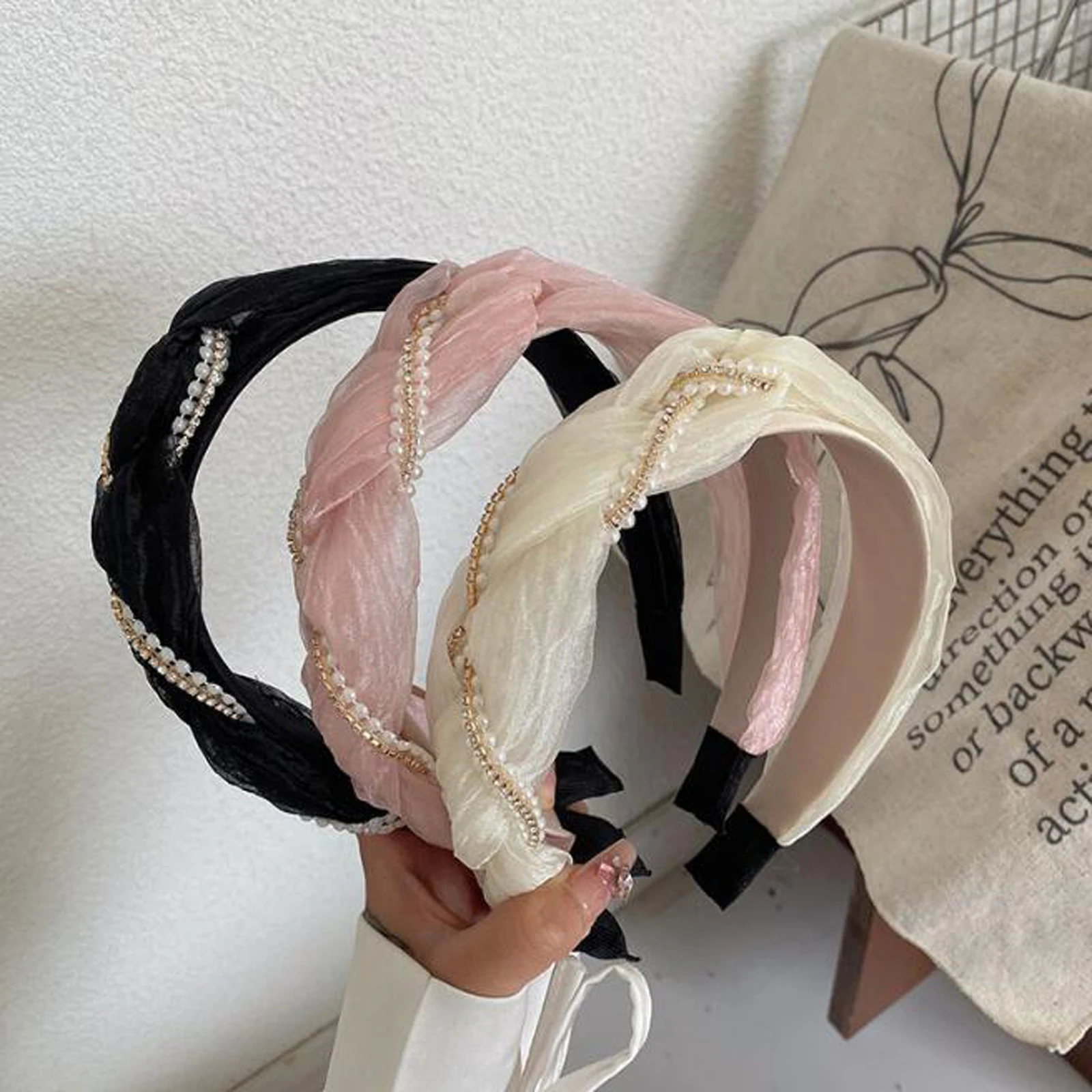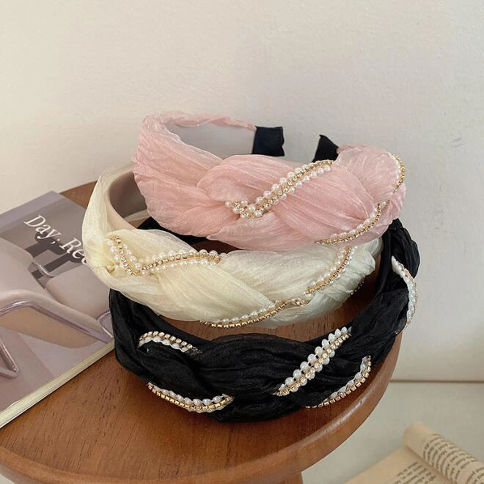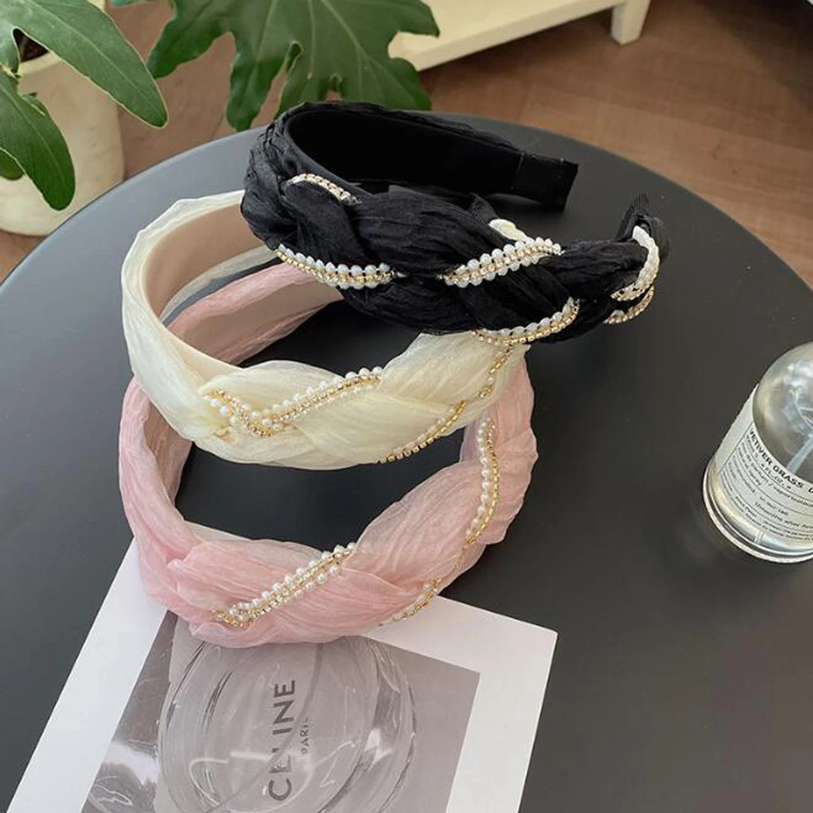 קשת לשיער אפנתי קלוע צמה משולב אבנים ופנינים ב-6 צבעים לבחירה