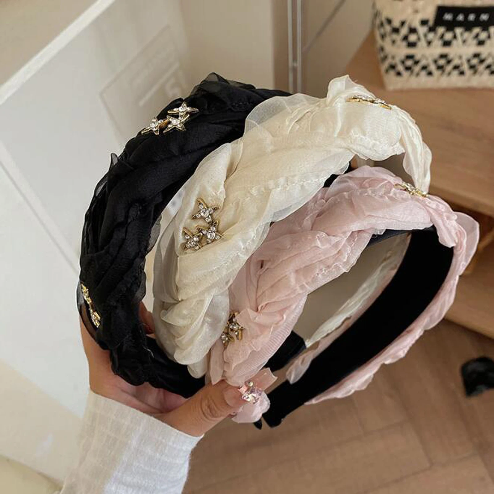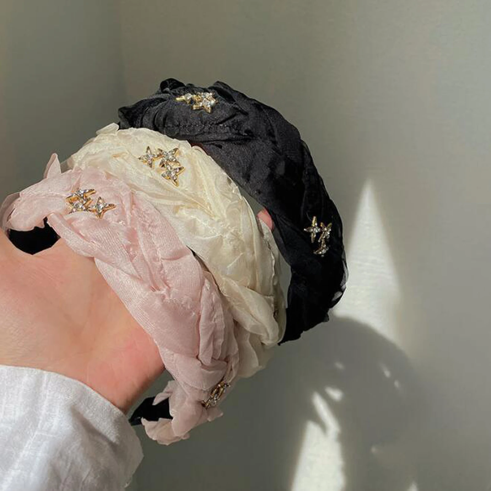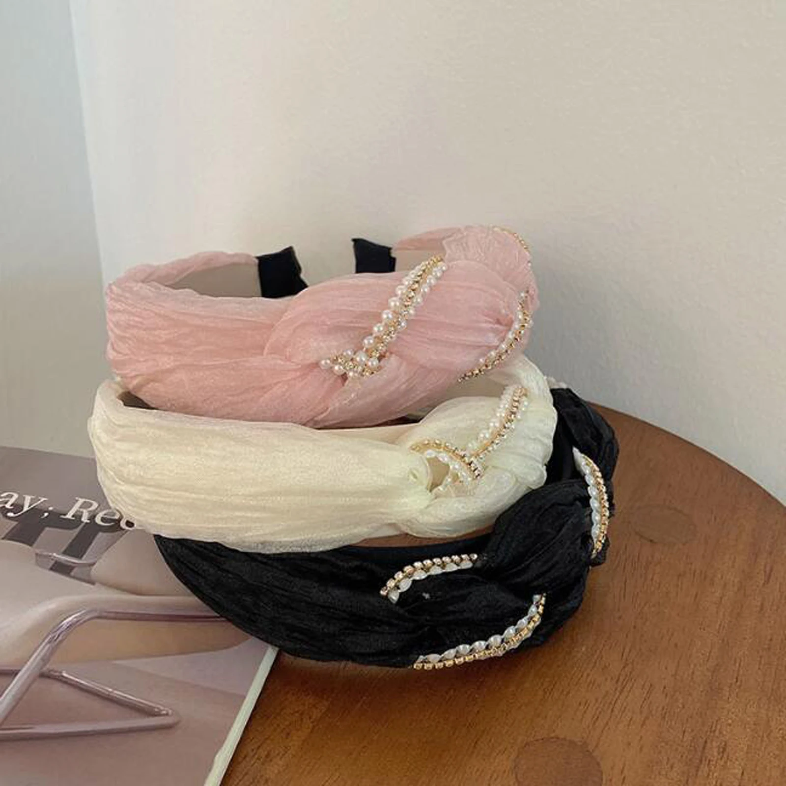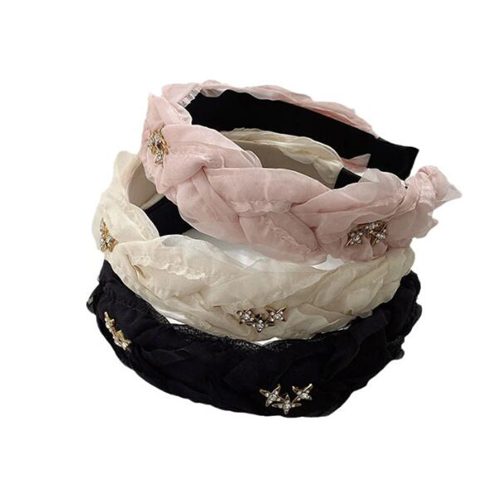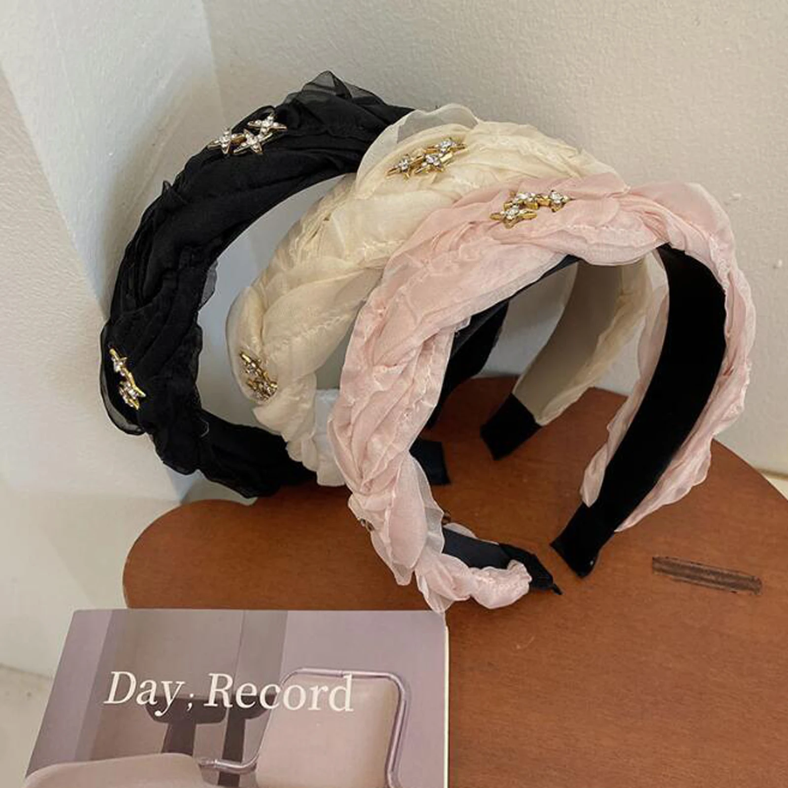 קשת לשיער אפנתי קלוע צמה משולב אבנים ופנינים ב-6 צבעים לבחירה