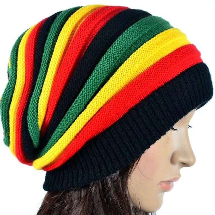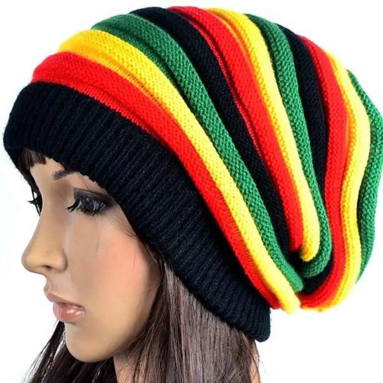 כובע צמר לנשים בוב מארלי ג'מייקה עם פסים צבעוניים – אקריליק, סריגה צמר